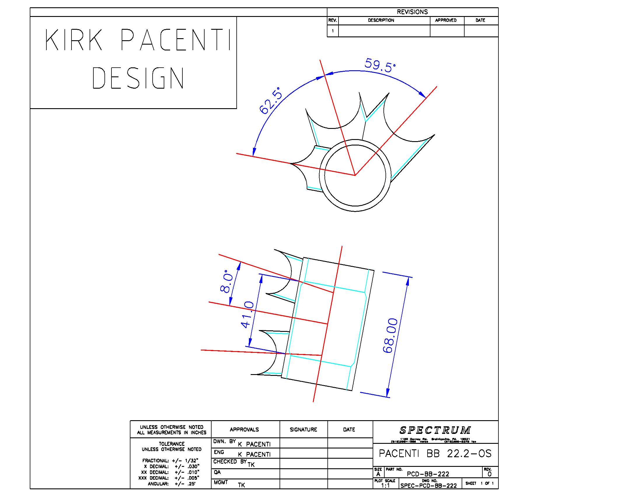 Designed by Kirk Pacenti and Tom Kellogg to offer builders the unique ability to create frames with stiffer chain stays, bottom brackets and rear triangles than oval chain stays offer while enabling improved tire clearance over traditional round chain stay shells. With the exception of the Kirk/Kellogg bottom bracket, 22.2mm Bottom Brackets have not been redesigned since the advent of modern chain lines. During the period when state of the art frames were designed for 5, 6, 7 & 8-speed drivetrains, component manufacturers' designs required very narrow chain lines which in turn required narrow-set chain stays. Those chain lines went away many years ago but there was no effort to alter shell designs until Kirk and I did so.